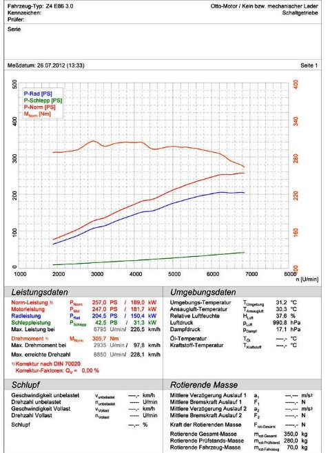 sein Fahrzeug auf dem Leistunsprüfstand zu messen.